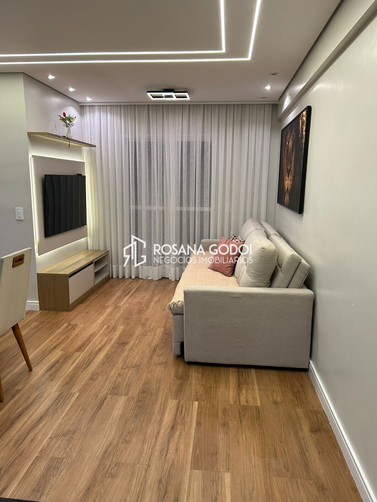 São 3 dormitórios com armarios planejados, sendo 1 suíte com sacada envidraçada, Sala para dois ambientes com sacada gourmet envidraçada (churrasqueira a carvão), Cozinha estilo americana com armários planejados, Área de serviço com armário, Wc social e 1 Vaga de garagem coberta. Água quente em todas as torneiras do imóvel.
