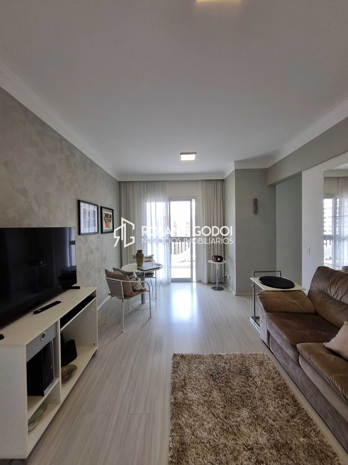 São 3 dormitórios, sendo 1 suíte com sacada, Sala para dois ambientes com sacada gourmet, Cozinha com armários, Área de serviços, Wc social e 2 Vagas de garagem (indianas) cobertas.