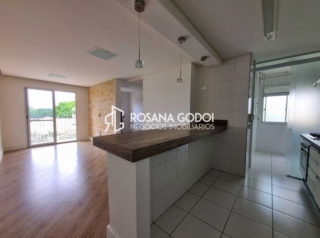 São 3 dormitórios (1 com armários), sendo 1 suíte e 1 utilizado como escritório (podendo reverter), Sala ampla para dois ambientes com sacada, Cozinha estilo americana com armários, forno, fogão e depurador, Área de serviços, Wc social e 2 Vagas de garagem.