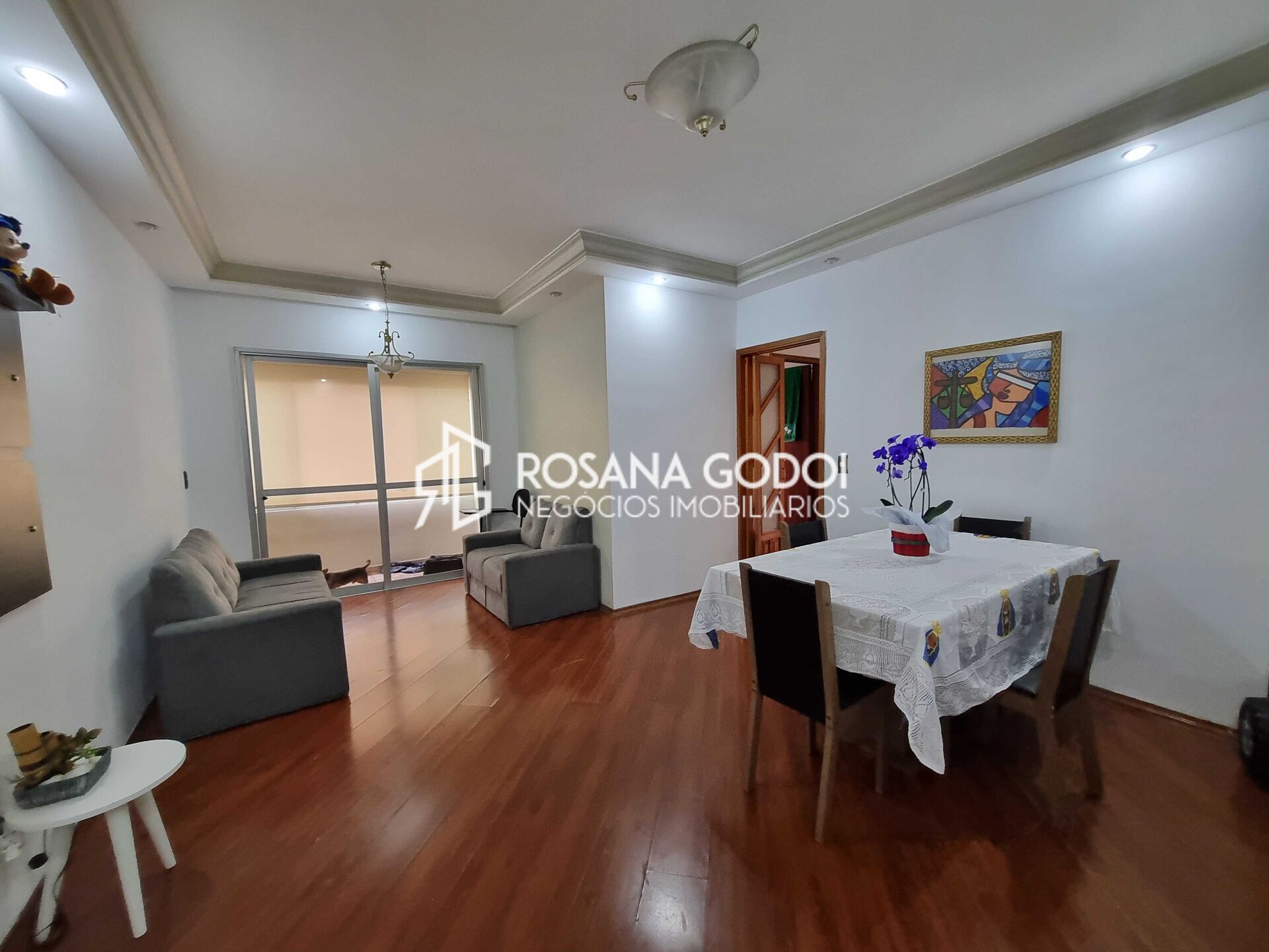 São 4 dormitórios com armários, sendo 1 suíte com ar condicionado, Sala para dois ambientes com sacada, Cozinha com armários, Área de serviços, Wc social, Dormitório para colaboradores com armários e Wc e 2 Vagas de garagem cobertas e fixas.