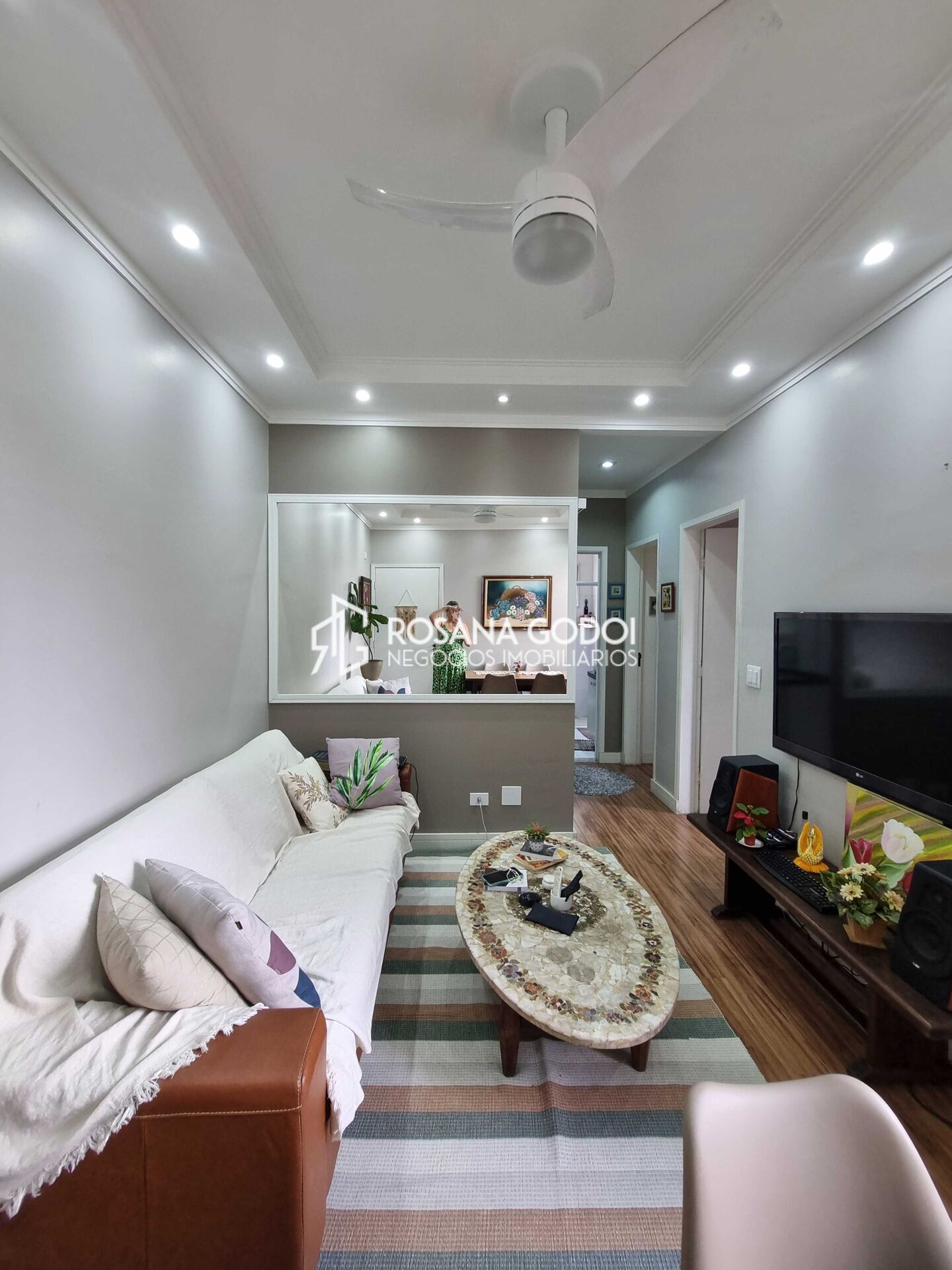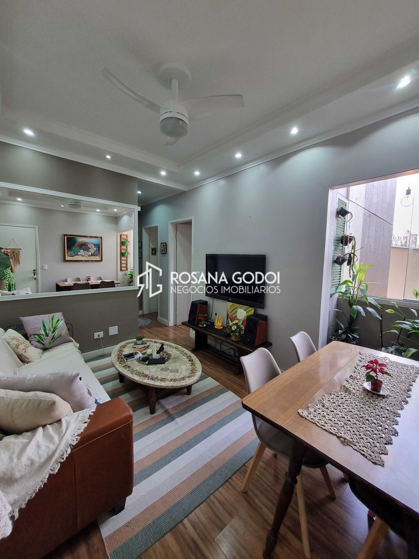 São 2 dormitórios com armários planejados, Sala para dois ambientes com sacada envidraçada, Cozinha com armários planejados, Área de serviços com armários, Wc e 2 Vagas de garagem (1 coberta e fixa).