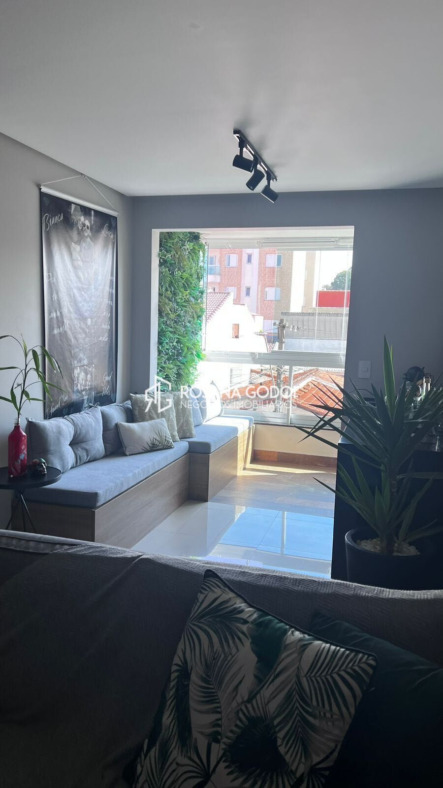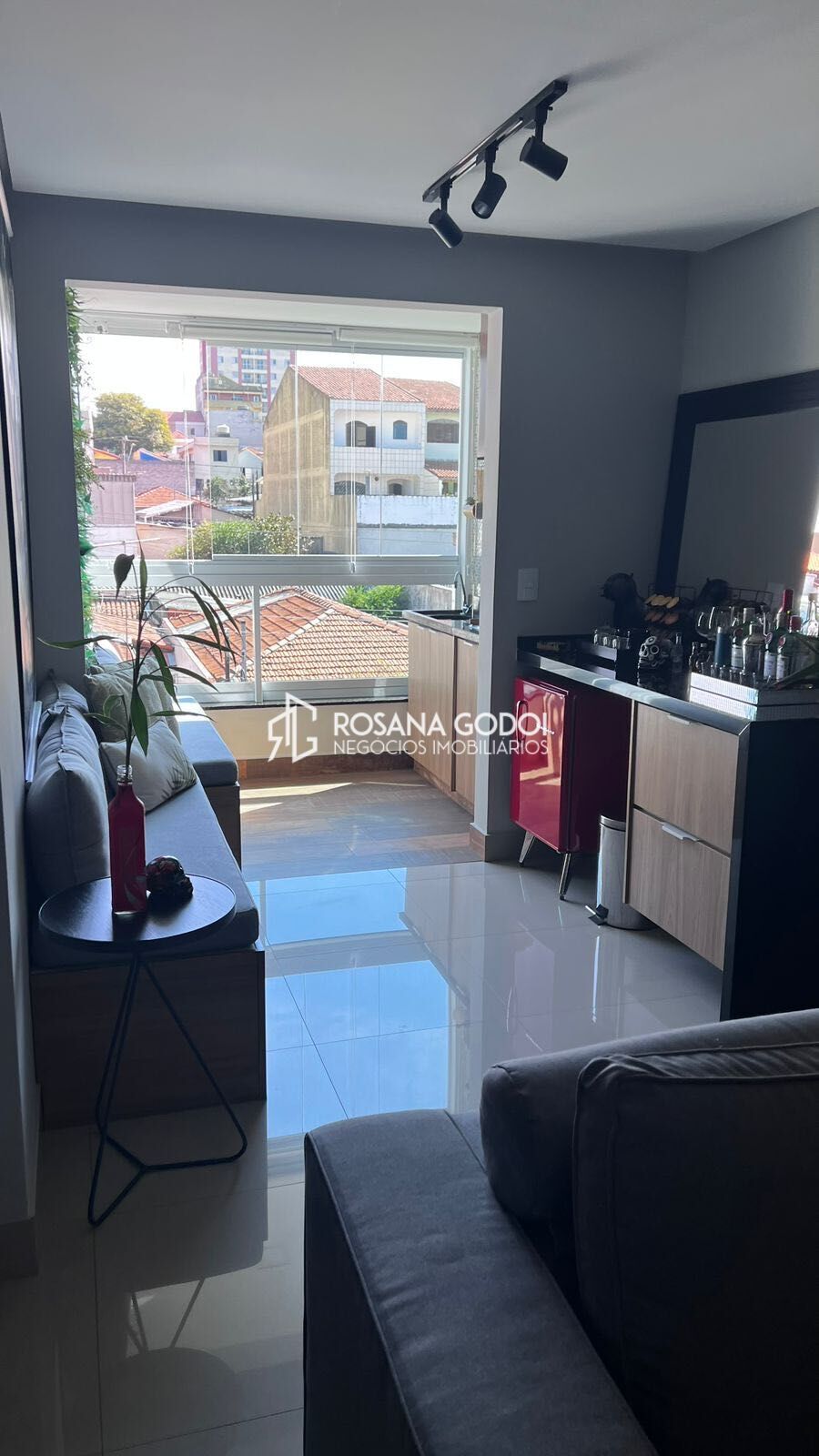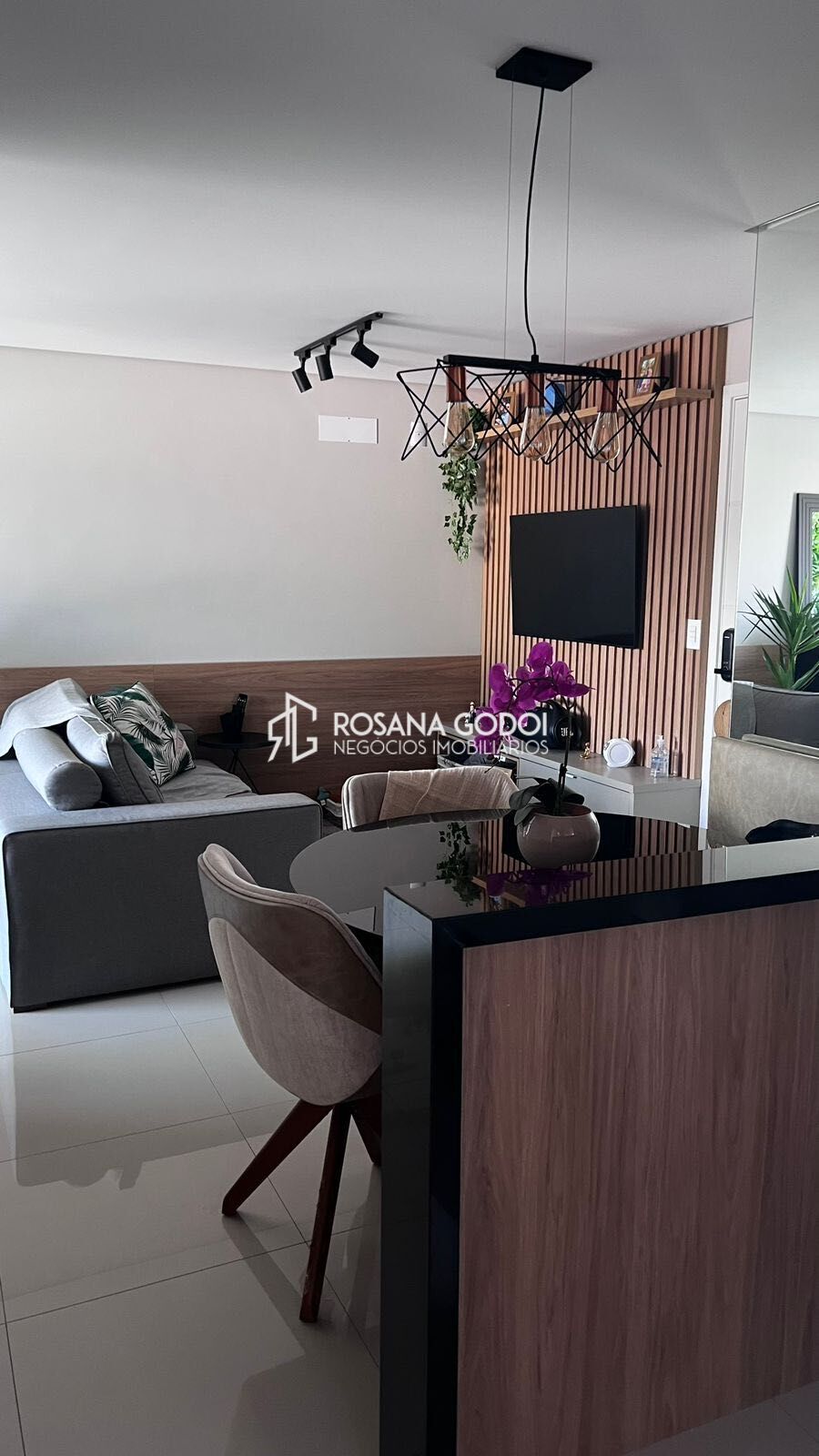 São 2 dormitórios, sendo 1 suíte e 1 com armários planejados, Sala para dois ambientes com painel, home para tv, banco do canto americano, espelho e sacada gourmet envidraçada com banco, Cozinha com armários planejados e fogão, Área de serviços, Wc social com espelho e 1 Vaga de garagem coberta.