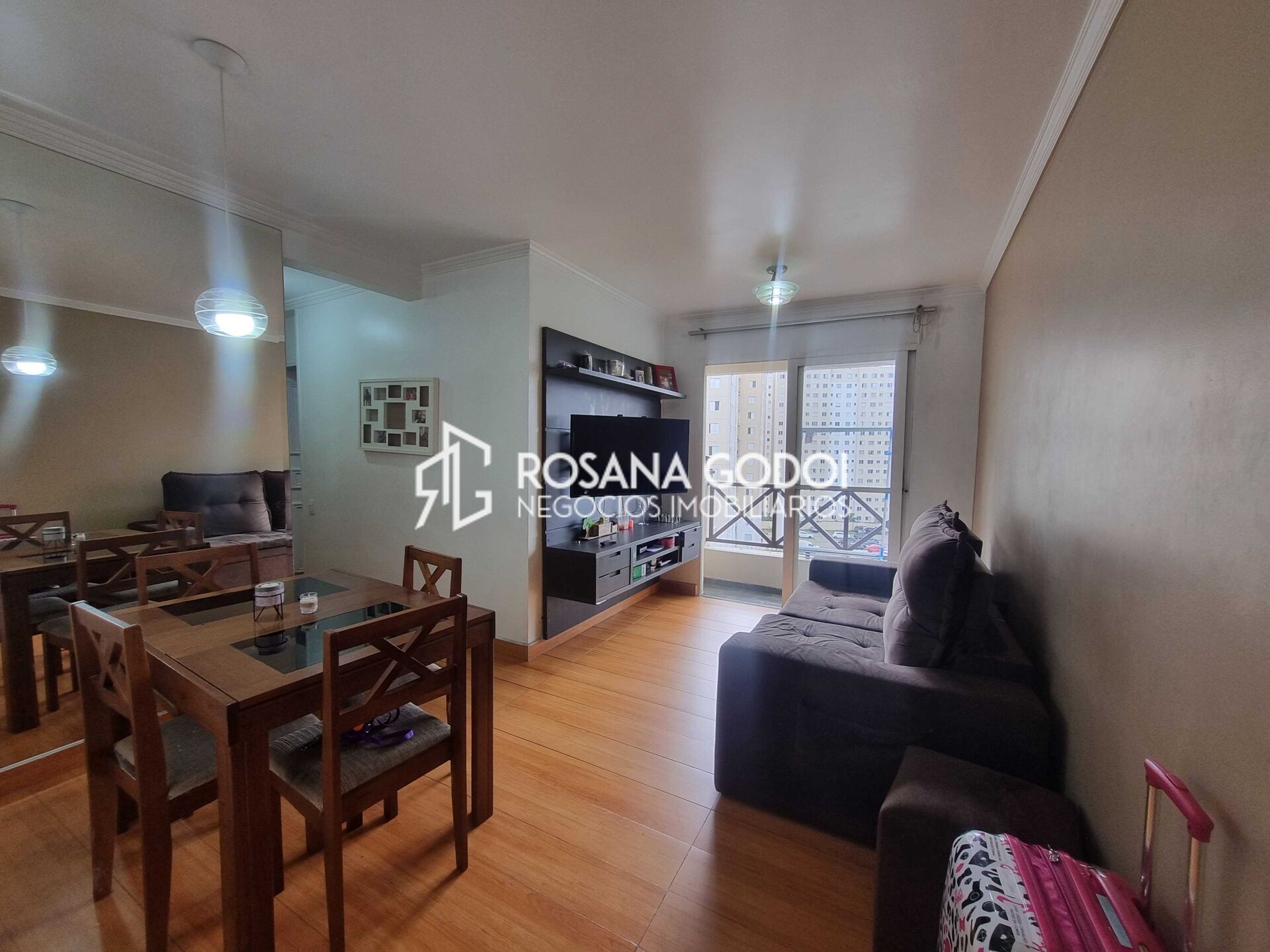 São 2 dormitórios com armários, Sala para dois ambientes com sacada, Cozinha com armários planejados, Área de serviços, Wc e 1 Vaga de garagem.