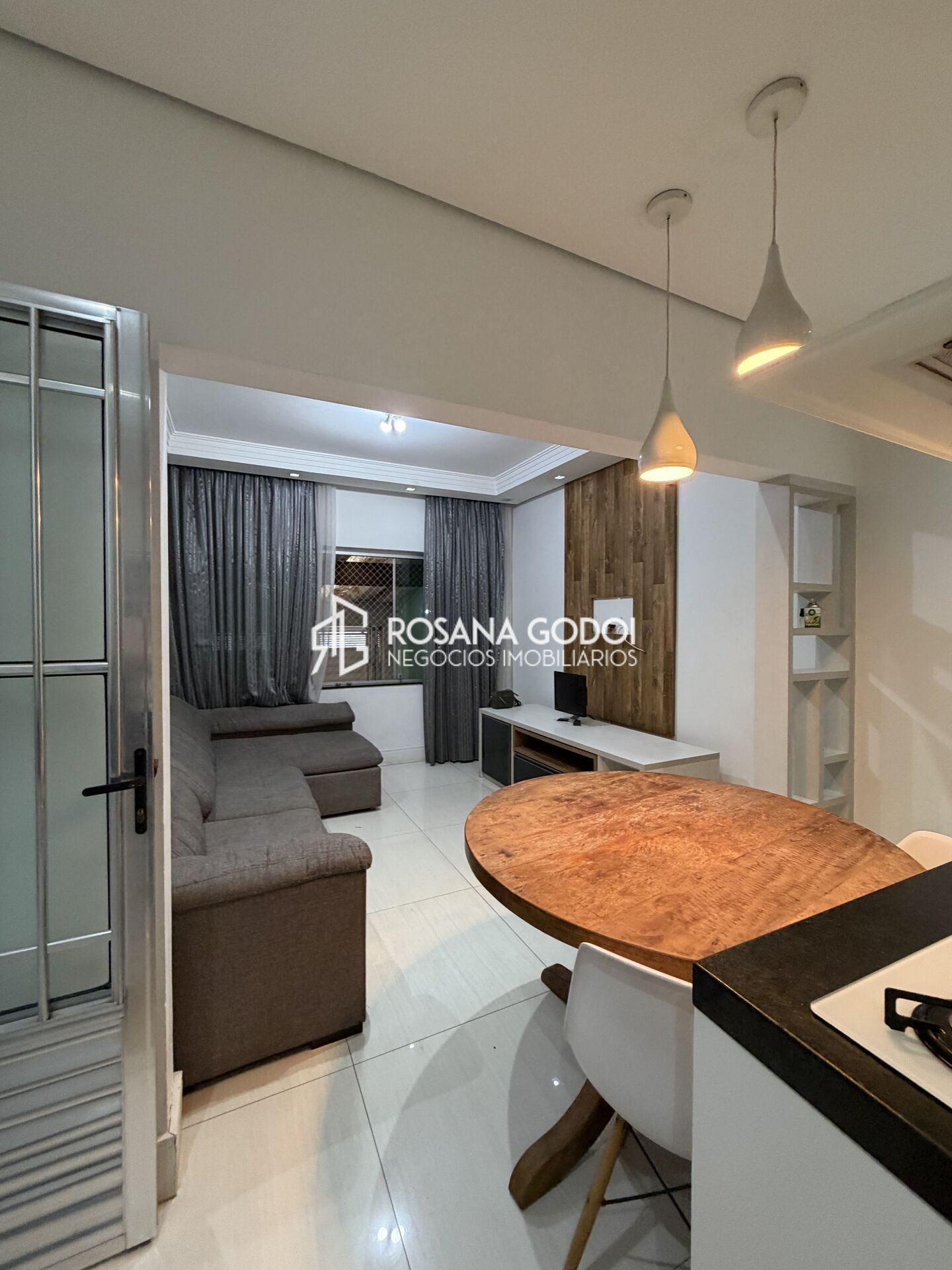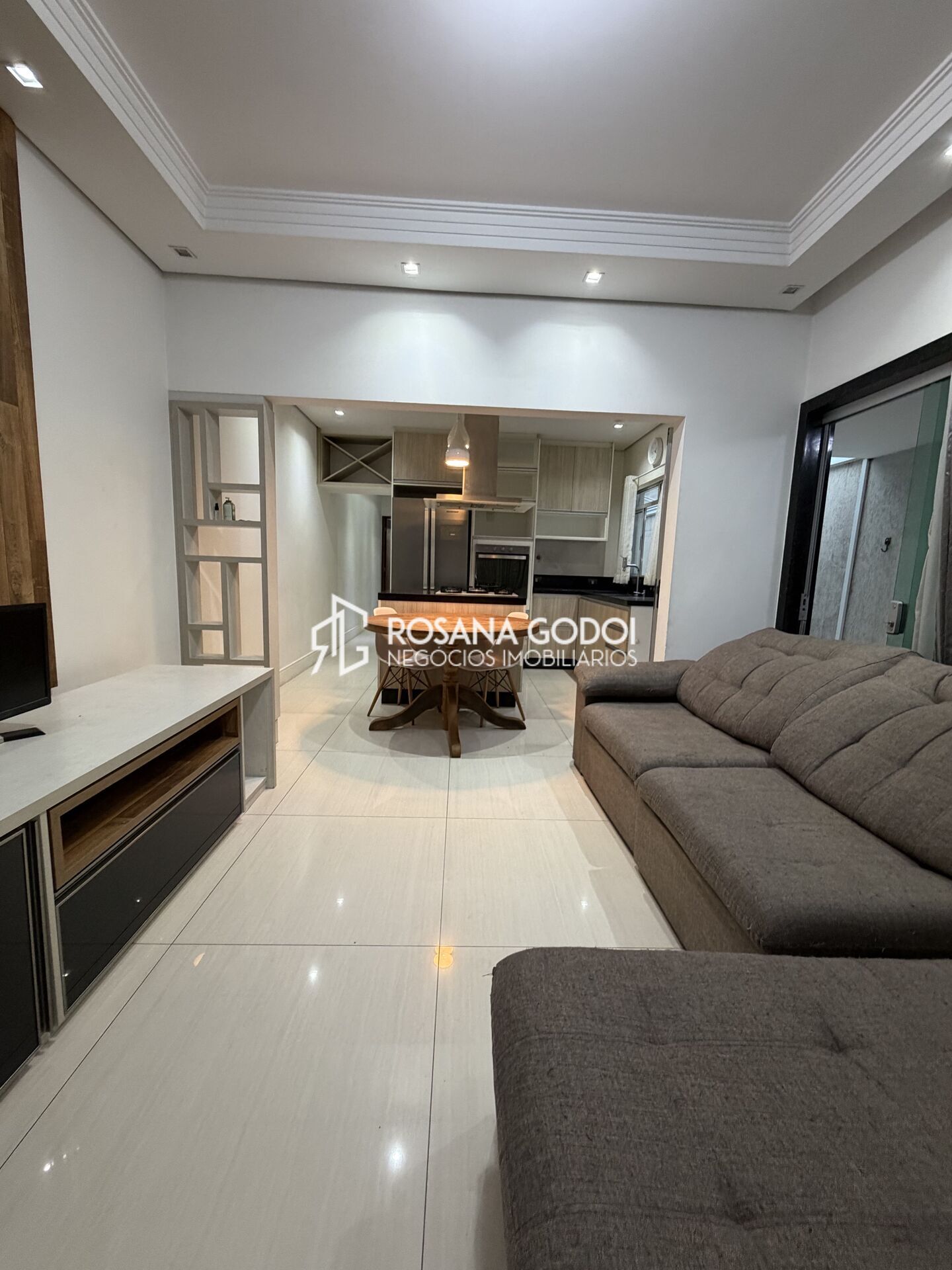 São 2 dormitórios com armários planejados, sendo 1 suíte, Sala integrada com home e ar condicionado, Cozinha com armários planejados, forno, cooktop e coifa na ilha, Wc social, Área de serviços, Quintal com churrasqueira e Garagem para 2 veiculos pequenos com portão automático.