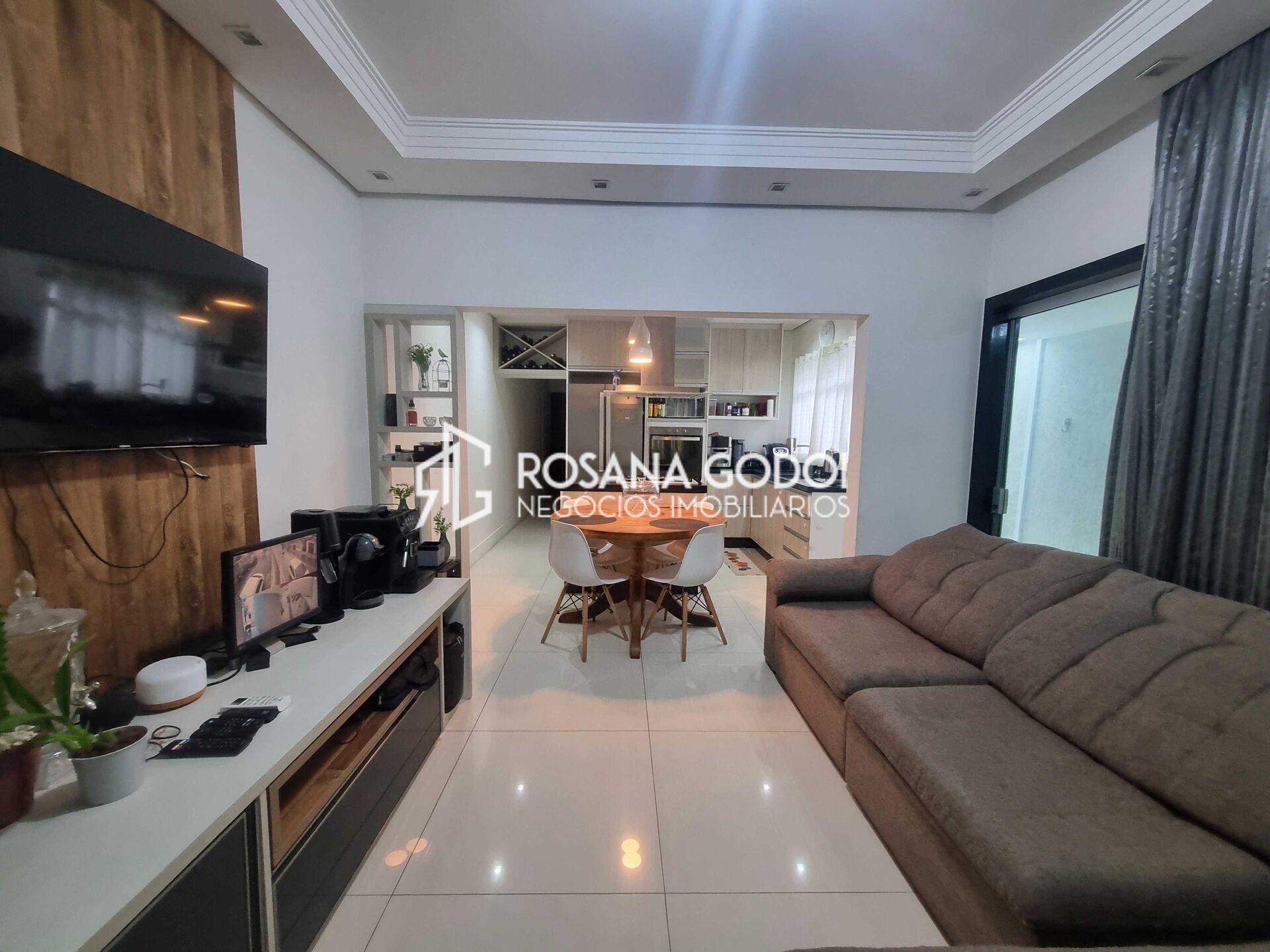 São 2 dormitórios com armários planejados, sendo 1 suíte, Sala integrada com home e ar condicionado, Cozinha com armários planejados, forno, cooktop e coifa na ilha, Wc social, Área de serviços, Quintal com churrasqueira e Garagem para 2 veiculos pequenos com portão automático.