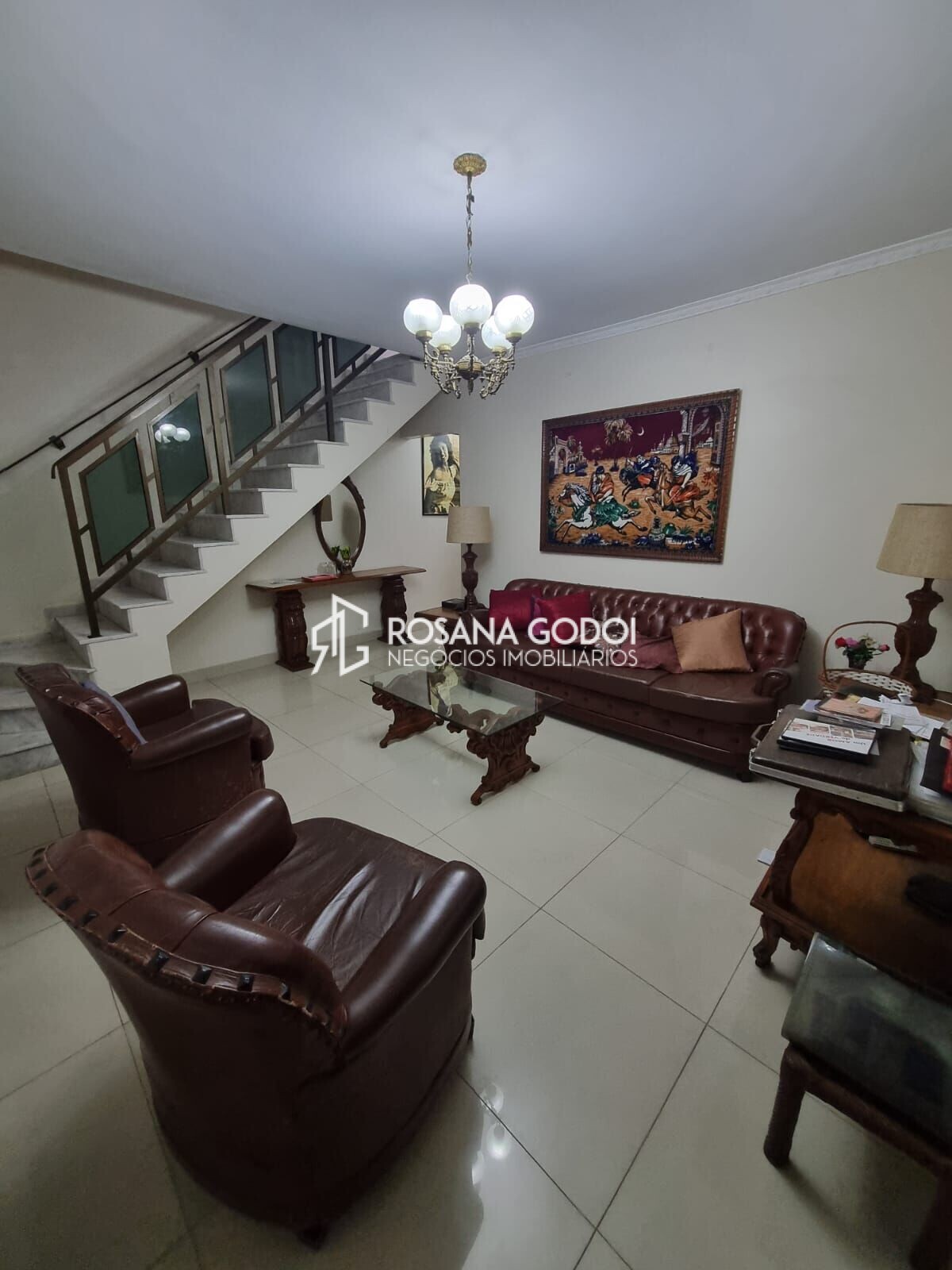 São 3 dormitórios, Sala de estar, Sala de Jantar, Cozinha, Lavabo, Wc social, Área de serviços ampla e coberta, Corredor lateral e 5 vagas de garagem.