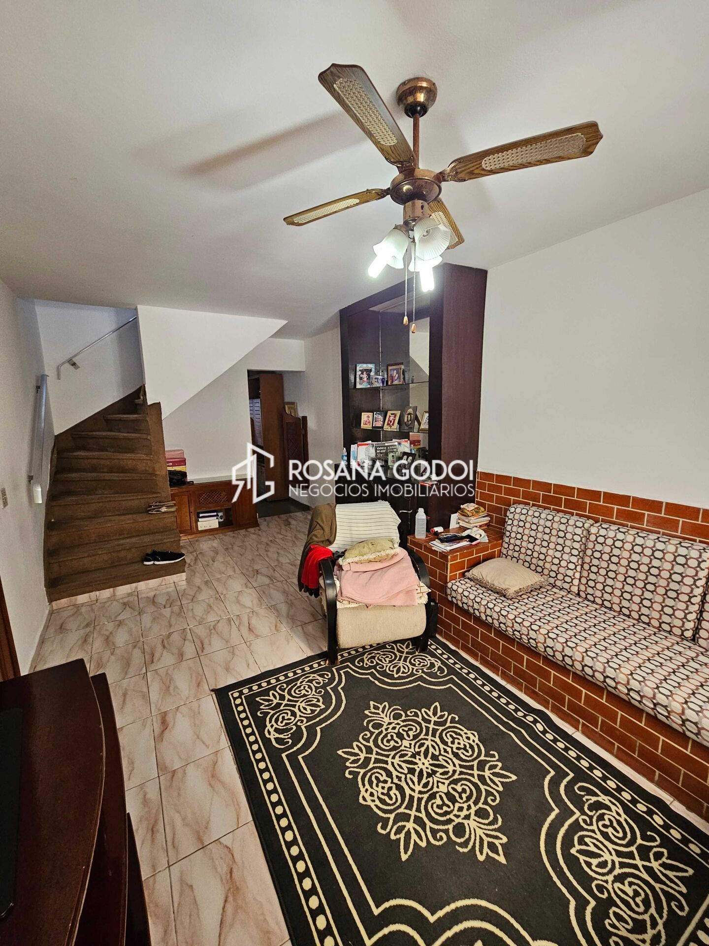São três dormitórios sendo dois com armários, sala ampla, sala de jantar, cozinha, wc social. Nos fundos possui quintal, área de serviço, quarto com lavabo e na parte superior amplo espaço. 2 vagas de garagem cobertas.