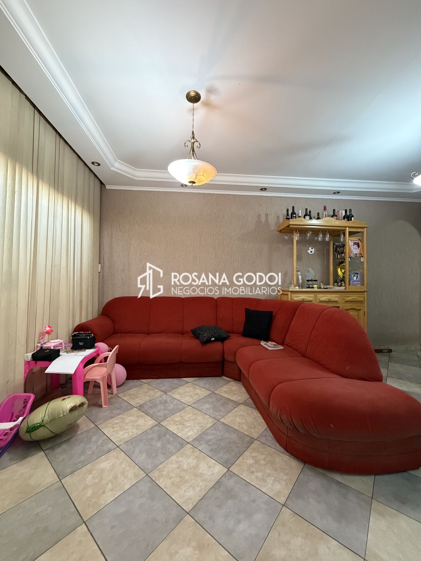 São 3 dormitórios, sala para dois ambientes, cozinha ampla com armários, lavabo, área de serviço coberta, banheiro social, quintal com pequeno quarto, entrada lateral e 1 vaga de garagem coberta.